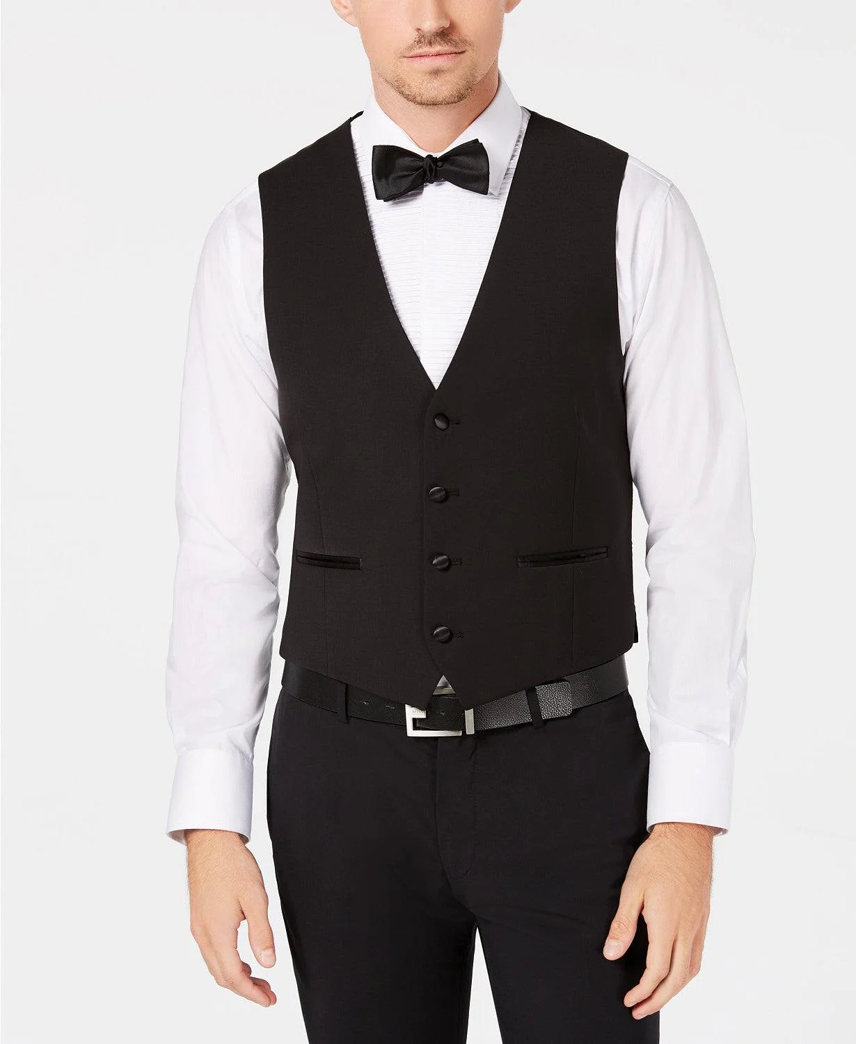Comfortably enhance your sport coat style, elevate your formal wear or go for a modern metropolitan look with the tailored cut and stretch design of this Calvin Klein vest.