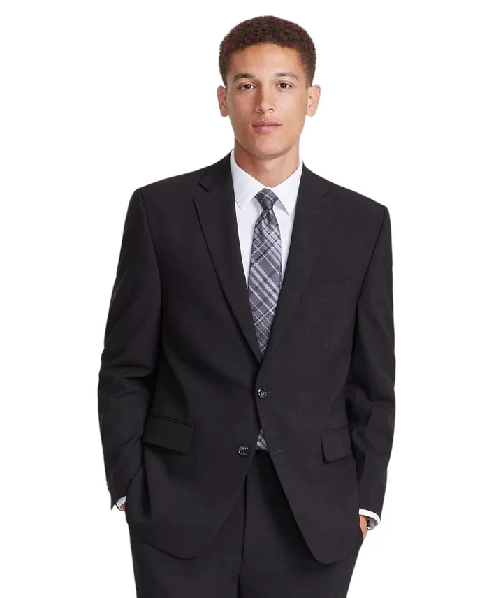 Fortify your ever-growing collection of reliable, event-ready formal looks with this solid, modern-fit suit from Perry Ellis, designed with a hint of stretch to keep you loose with every wear.